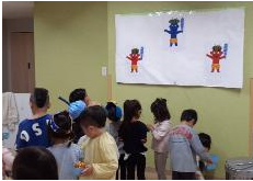 つくし組に戻ってからは壁面の鬼に向かって